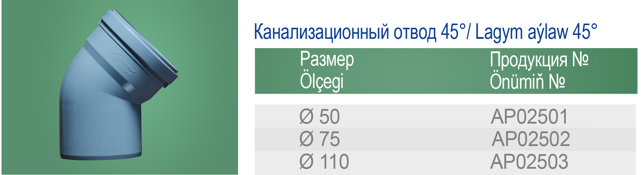 Канализационный отвод 45°